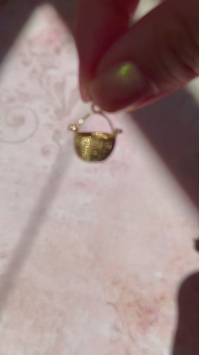 This articulating charm captures the whimsical spirit of a Nantucket basket in authentic 14K gold. The piece moves with graceful flexibility, and a split ring bail makes it easy to attach to your favorite bracelet or chain. A true vintage find with character and charm.