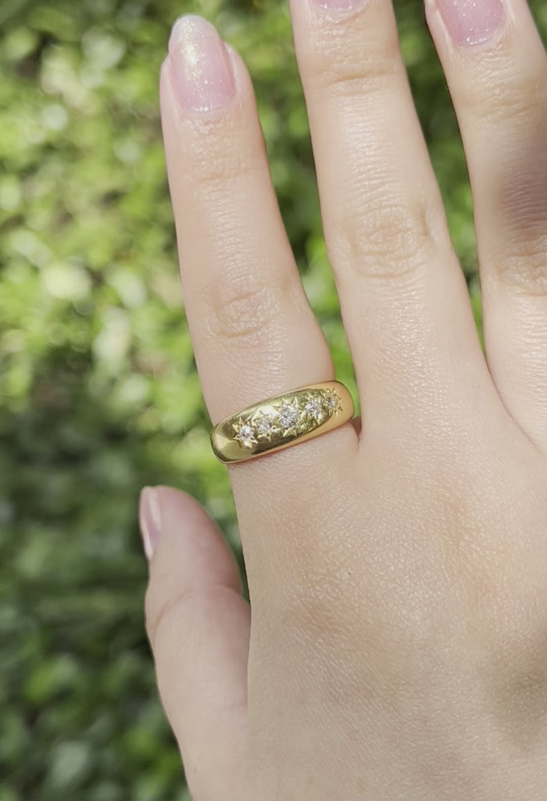 Antique 5 Old Cut Diamond Celestial Ring, Chester 1907, 18K, Size 9