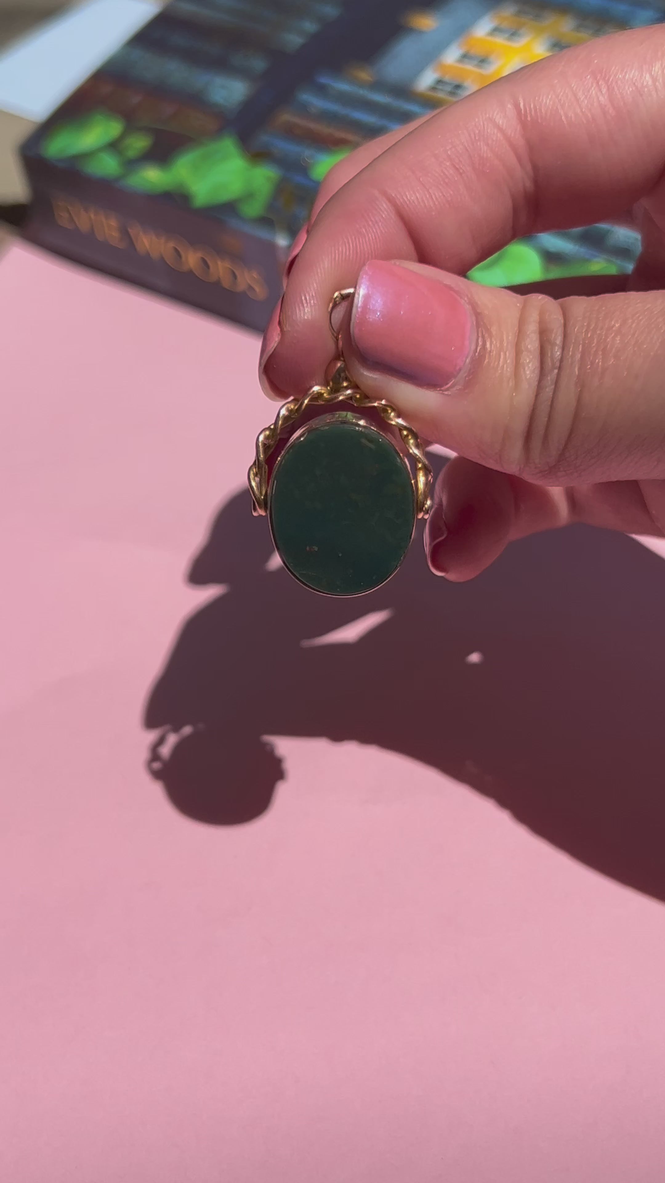 This cherished antique fob carries the gentle warmth of a rosy gold patina, earned through its century-long journey. Gracing its center is a bloodstone chalcedony, rich with character and history. The fob's seamless spinning motion connects you to all who treasured it before you. The hallmarks for Chester 1920-1921 confirm its remarkable heritage, making it not just jewelry, but a tangible piece of the past.