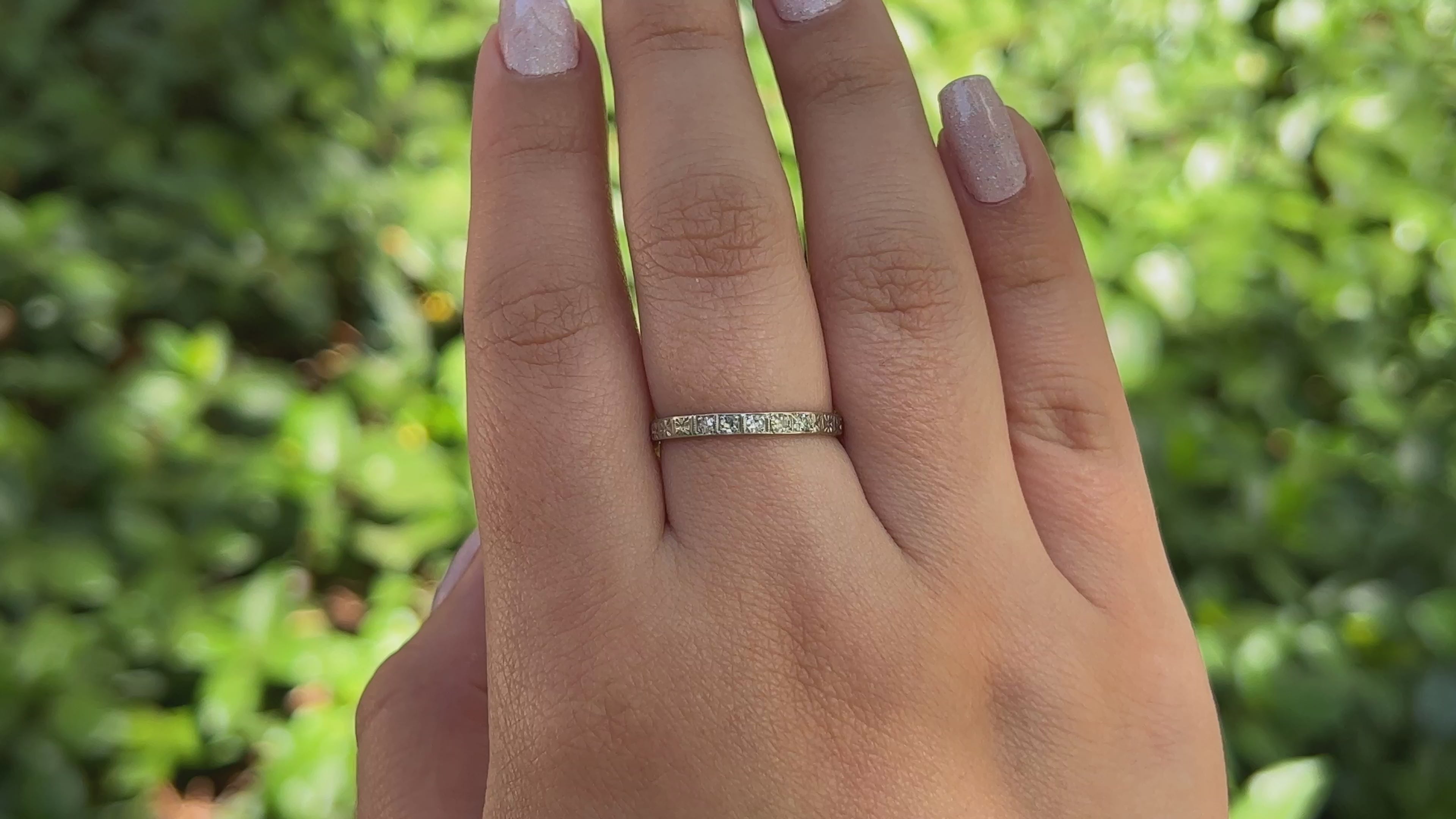 Art Deco Single Cut Diamond Wedding Band, size 7.25