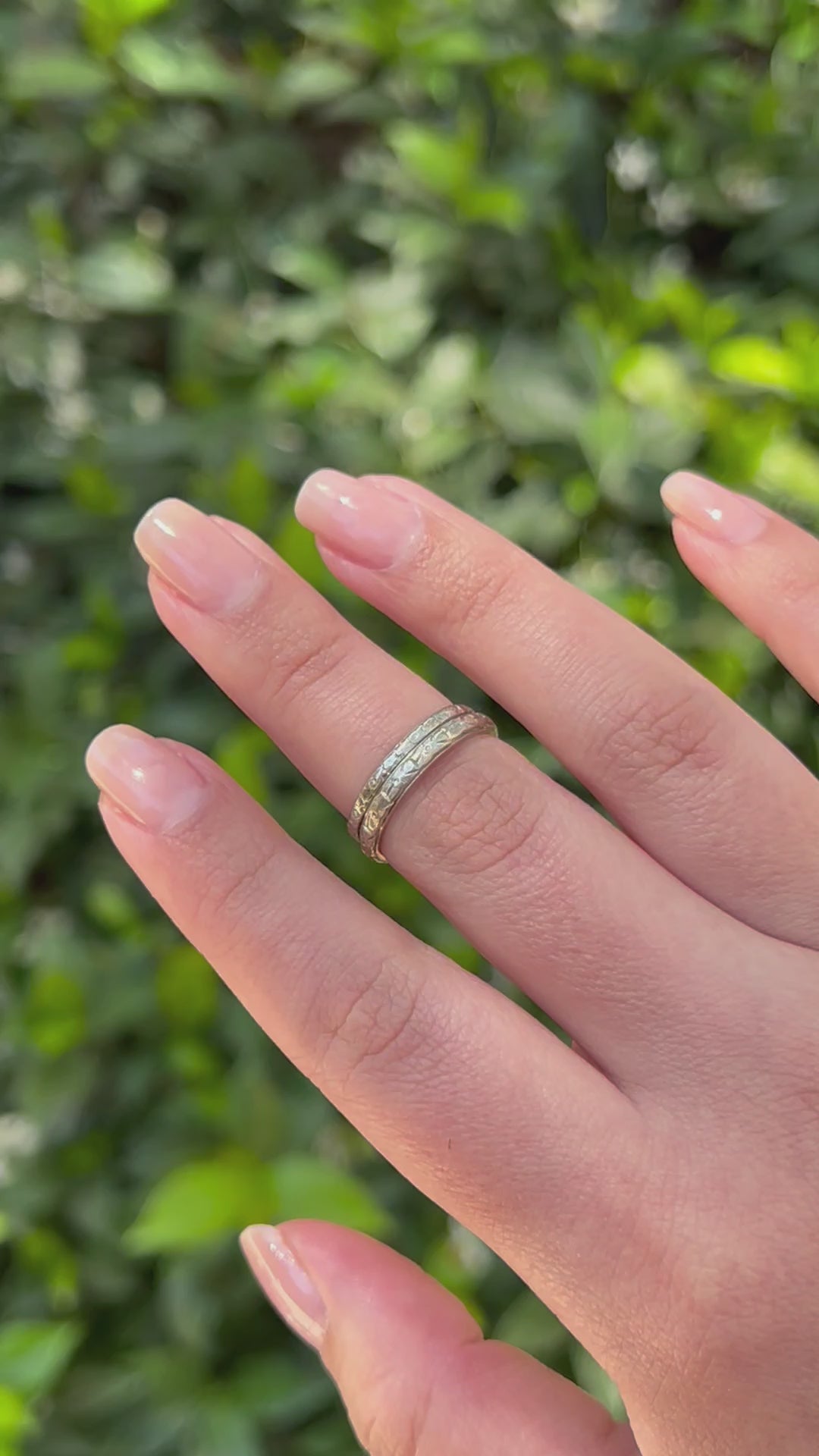 Add a touch of vintage elegance to your jewelry collection with this Vintage Belais floral eternity band. Featuring an intricate floral design, this band also includes a personalized engraving the name Berta inside. The perfect gift for your loved one or as a special treat for yourself.